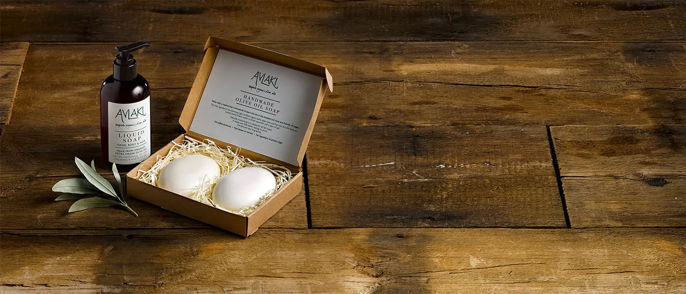 Hand Made Soap from AVLAKI’s organic extra virgin olive oils, with only water, saponifier and a dash of salt in the mix. Eco-friendly, gentle & moisturising. Registered VEGAN. Low suds, no scum and long lasting – more than twice most other brands.